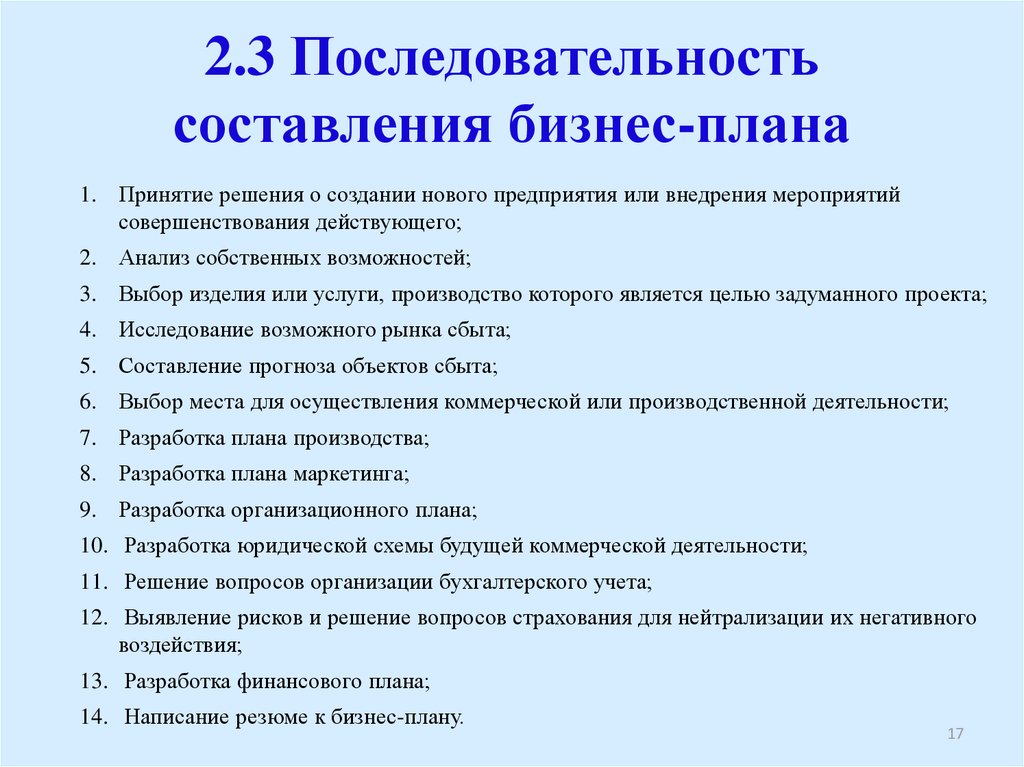Универсальной стратегии написания бизнес-плана нет, так как этот процесс тесно связан со спецификой деятельности каждой организации, но существует несколько основных этапов разработки плана, на которые следует опираться: