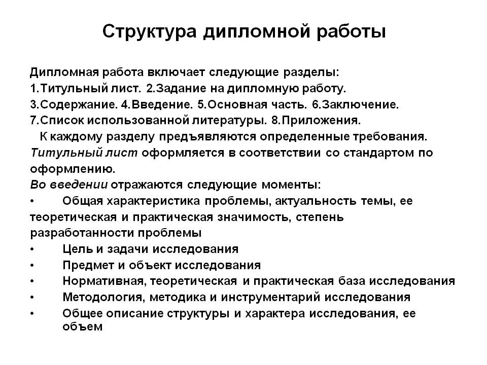 Выводы. В них приводится обобщенный итог каждого из предшествующих разделов дипломной работы.