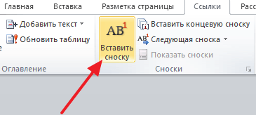 на верхней панели инструментов находится вкладка «Ссылки». Выбираем опцию «вставить сноску»;