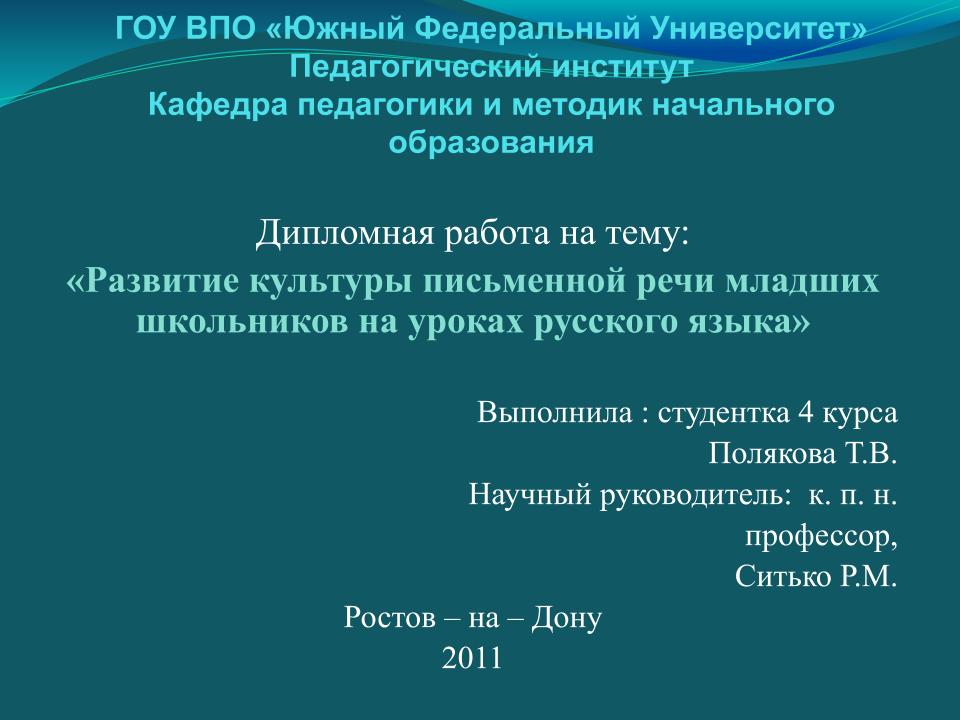 Образец защитной речи диплома с презентацией