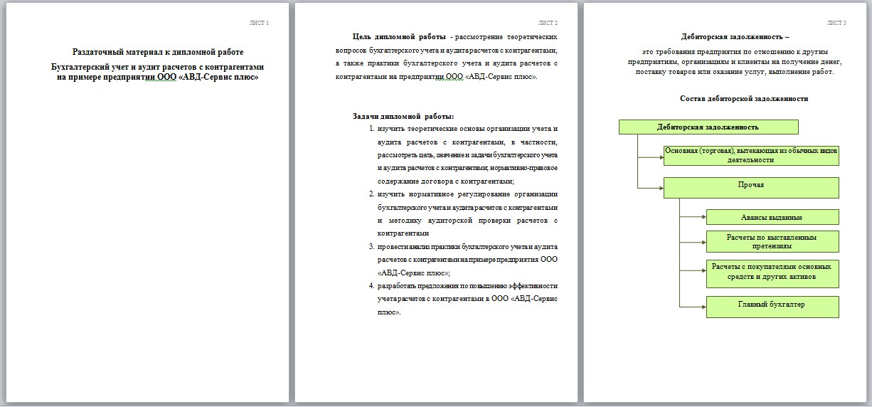 Раздаточный материал членам комиссии при защите диплома