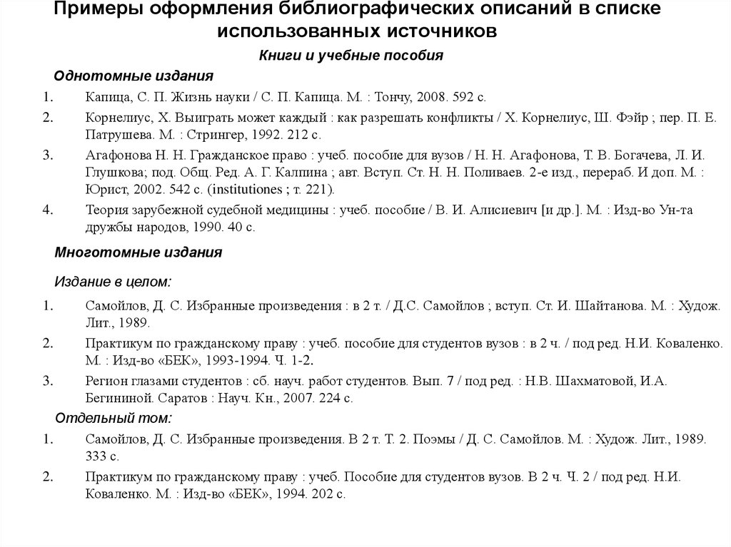 Подробную информацию по оформлению различных источников можно найти в ГОСТ 1-2003 «Система стандартов по информации, библиотечному и издательскому делу. Библиографическая запись. Библиографическое описание. Общие требования и правила составления».