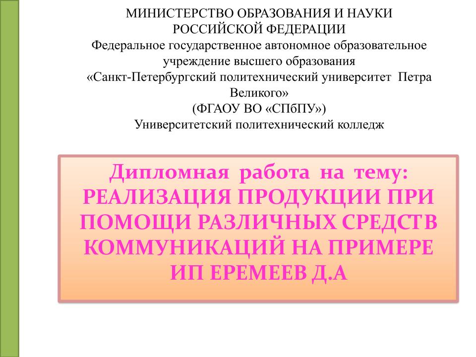 Презентация дипломной работы: образец