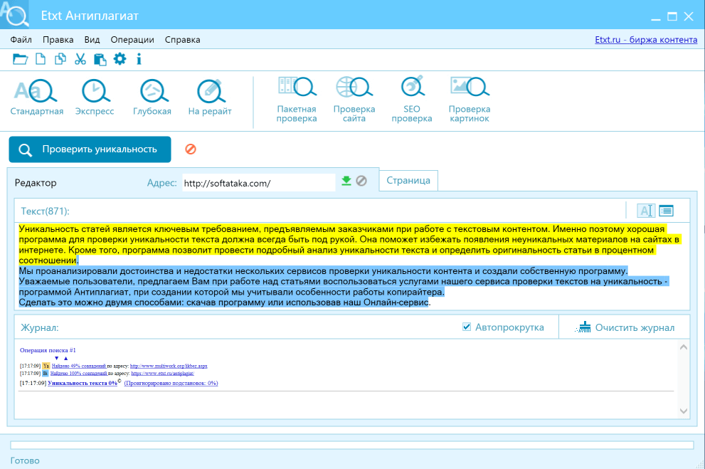 Далее программа обращается в Гугл, Яндекс, другие поисковые системы и отправляет туда словосочетания – шинглы.